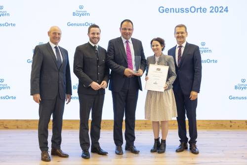 - Markt Prien am Chiemsee, Landkreis Rosenheim: v. l. Dr. Johann Niggl, Leitung Abteilung Tourismus, StMELF; Daniel Artmann (MdL); Staatssekretär Martin Schöffel; Bettina Zaufall (Marketing); Prof. Dr. Richard Balling, stv. Leitung Abteilung Ernährung und Ma